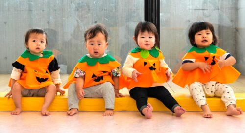 0歳児クラスは代々受け継がれているかぼちゃの衣装。