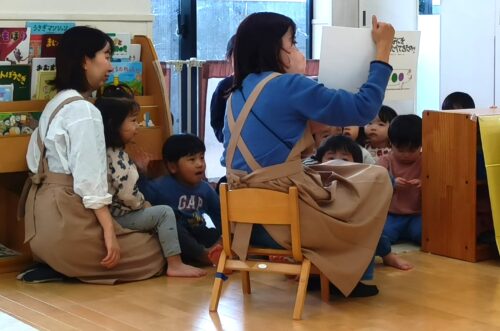 帰園後は、給食の準備ができるまで、ママ先生に絵本を読んでもらいました。