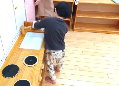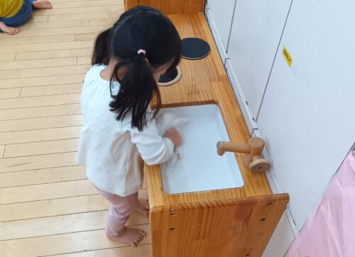 おままごとのキッチンや壁、棚の後ろもていねいに。