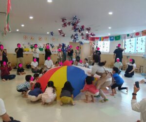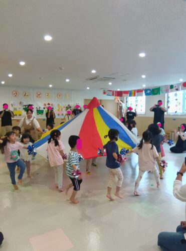 今回の見所は、力を合わせて作り上げた「パラバルーン」。