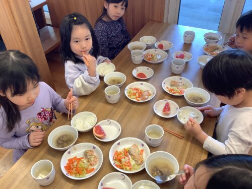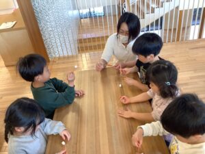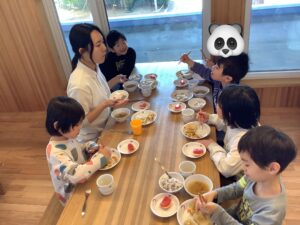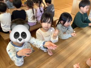 【4歳児クラスのぱんだ組、今月からお箸を使い始めました!】