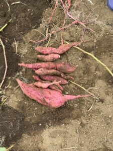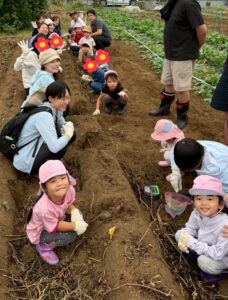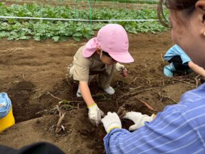 パパ、ママと力を合わせてお芋を掘ります💪🏻