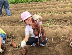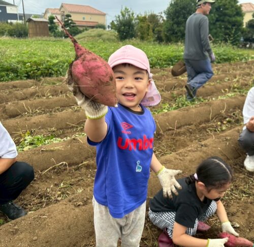パパ、ママと力を合わせてお芋を掘ります💪🏻
