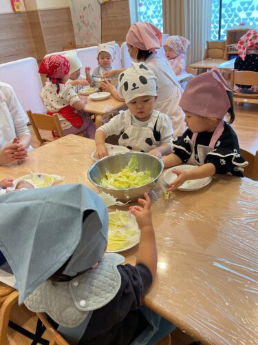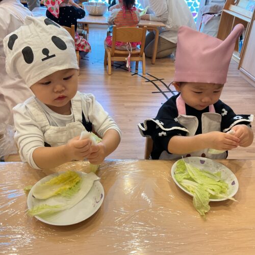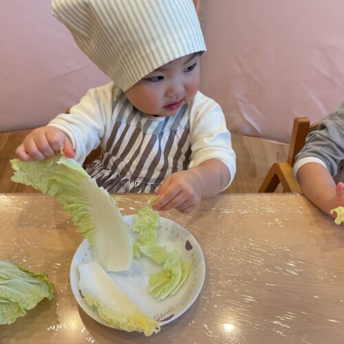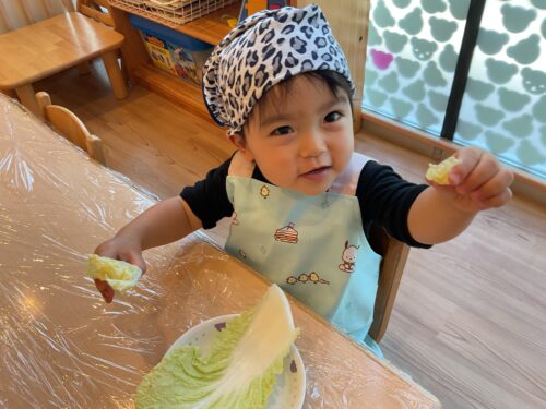 お給食に白菜が出てもぐもぐ食べていた子どもたちです😋