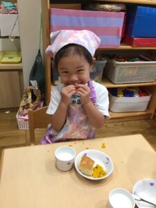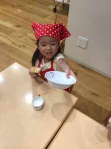 みんな準備から楽しそうです。しっかりと手を洗ってクッキングスタート!