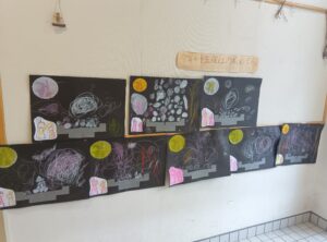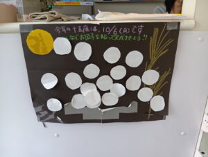 まずは十五夜の時に、お団子を書いたり(本園2~5歳児クラス)、貼ったりしました(分園1歳児クラス)。