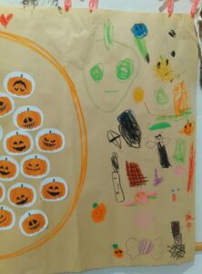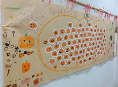 みんなたくさん貼りたくて、あっという間にかぼちゃの顔が売り切れ。