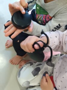 みんなが鳴らして先生に踊ってもらいました。