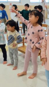 さあ、4・5歳児クラスはカスタネットに挑戦。