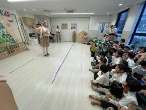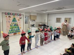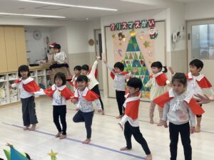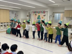 本日はみんながずっと楽しみにしていたクリスマス会🎄がありました‼️始める前からサンタさんは来るかな❓と、みんなドキドキワクワク☺️初めに各クラスの発表会をしました✨歌や踊り、楽器や劇など様々な発表を披露しました。
