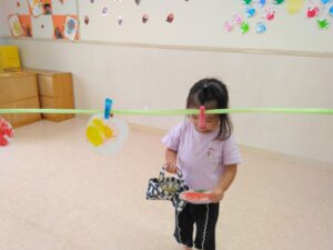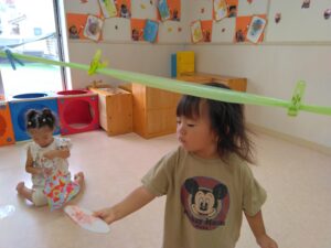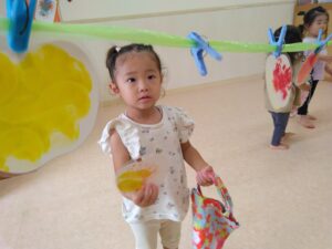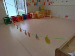 完成したものをスズランテープで飾り、一人ひとりカバンを持ったらくだものがりスタート!
