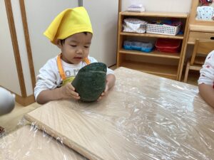そのあとは、実際にかぼちゃを握って丸めてかぼちゃ茶巾作りをしました!