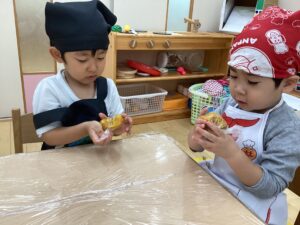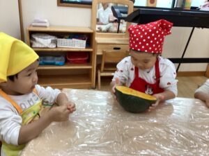 こあら組さんでかぼちゃ茶巾づくりをしました!🎃
