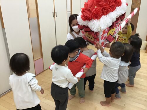 みんなで「わっしょいっ、わっしょい♬」と掛け声をかけながら協力して運ぶ姿がとても可愛らしいです😊