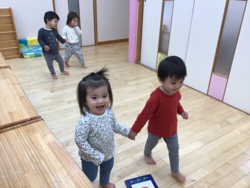 みこしを担いで遊んだ後は、お友だちと手を繋いで大行進🎶