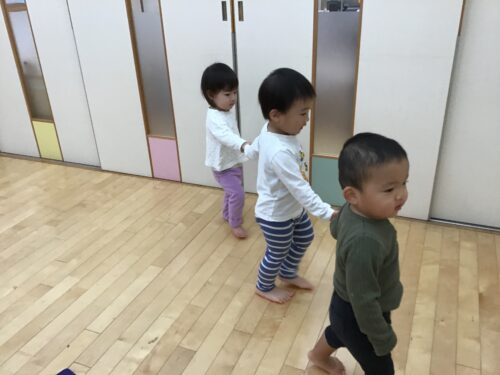 みこしを担いで遊んだ後は、お友だちと手を繋いで大行進🎶
